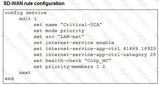 You configured an SD-WAN rule with the best quality strategy and selected the predefined health check, Default_FortiGuard, to check the link performances against FortiGuard servers.