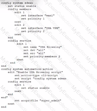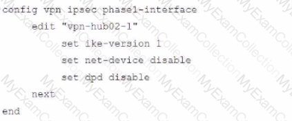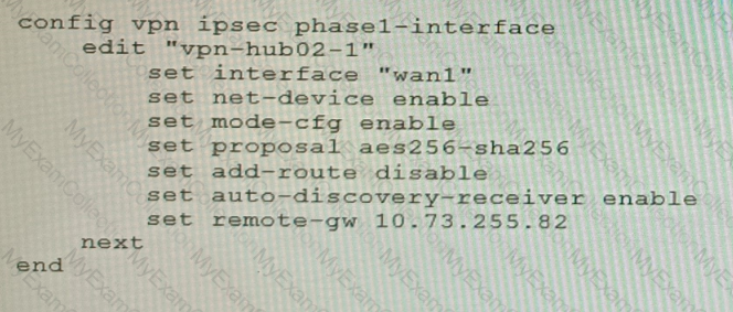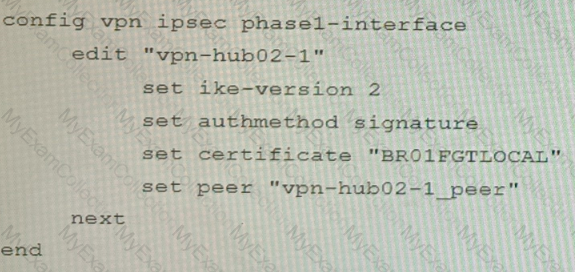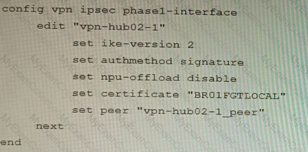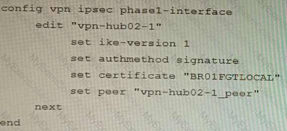 Refer to the exhibit, which shows a FortiGate configuration snippet.