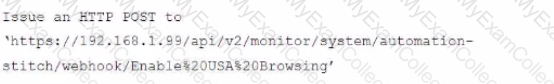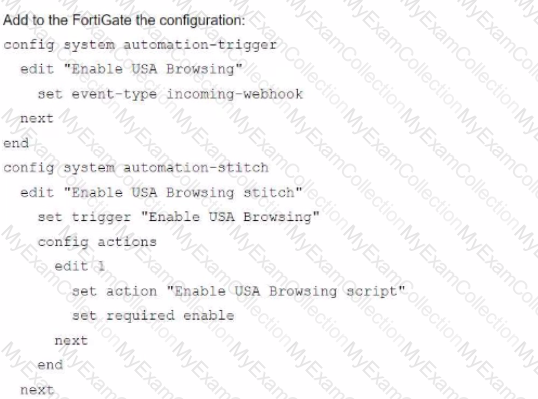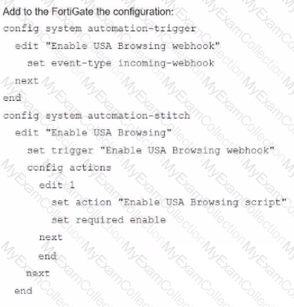 A customer in Costa Rica has a FortiGate with SD-WAN configured to use a VPN connection to the United States to browse the internet using a public IP from that country. They would like to enable the SD-WAN rule using a webhook.
