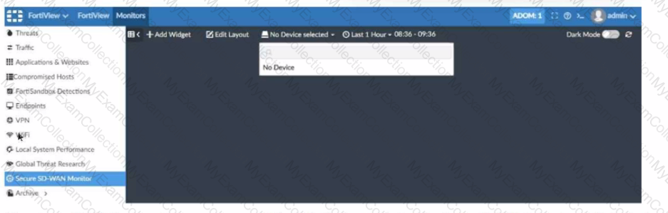 After a Secure SD-WAN implementation a customer reports that in FortiAnalyzer under FortiView Secure SD-WAN Monitor there is No Device for selection.