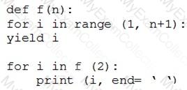 Which line can be used instead of the comment to cause the snippet to produce the following expected output? (Select two answers)