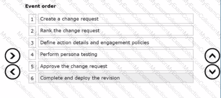 The bank wants to introduce a new offer in the Business Operations Environment. Place the steps in the correct order of implementation.