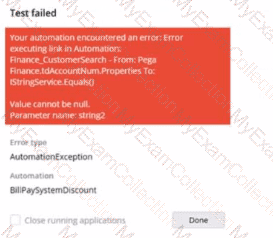 You are testing an automation that retrieves customer data from an application based on a customer number. The automation falls and displays the following error: