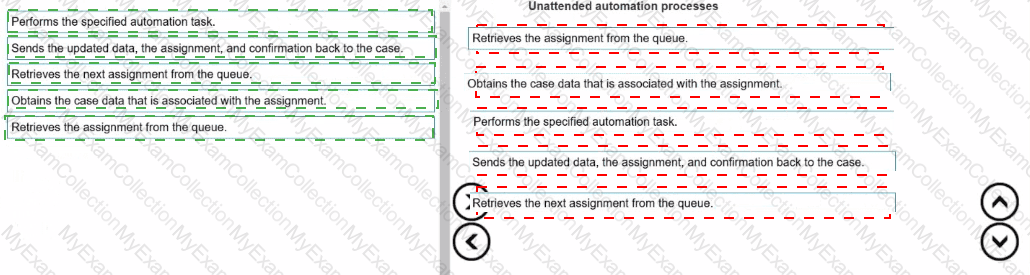 Unattended automations, when run. follow a basic process flow. Arrange the following steps in the order in which unattended automation topic processes a case.