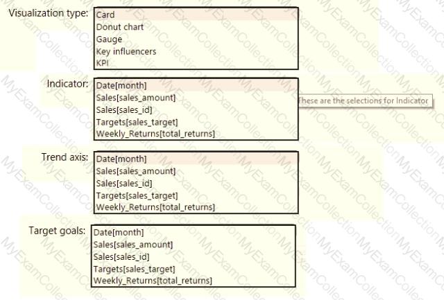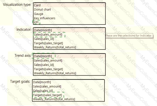 How should you create the visualization? To answer, select the appropriate options in the answer area.
