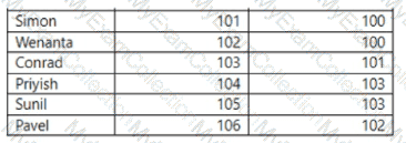 You create a table visual on a Power BI report page as shown in the following exhibit