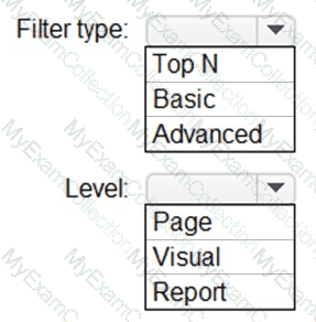 Which type of filter should you use, and at which level should you apply the filter? To answer, select the appropriate options in the answer area.