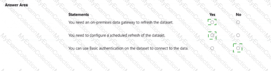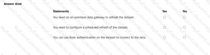 The report uses an imported dataset that contains one fact table. The fact table contains 12 million rows. The dataset is scheduled to refresh twice a day at 08:00 and 17:00.