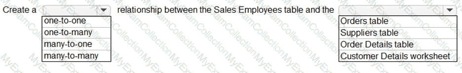 You use Power Query to import two tables named Order Header and Order Details from an Azure SQL database. The Order Header table relates to the Order Details table by using a column named Order ID in each table.