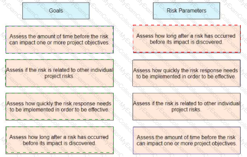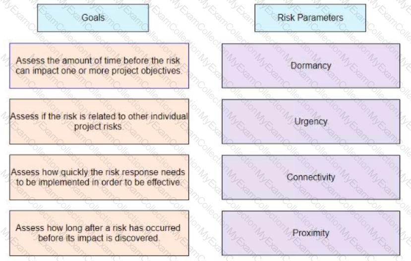 Match the project manager's goals on the left with the relevant risk parameter on the right.