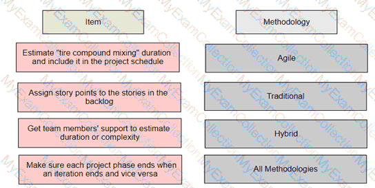 A project manager in an automotive company is scheduling activities for a complex project Some of the project requirements are fixed and some are flexible Match the items on the left with the methodology on the right that the project manager is using.