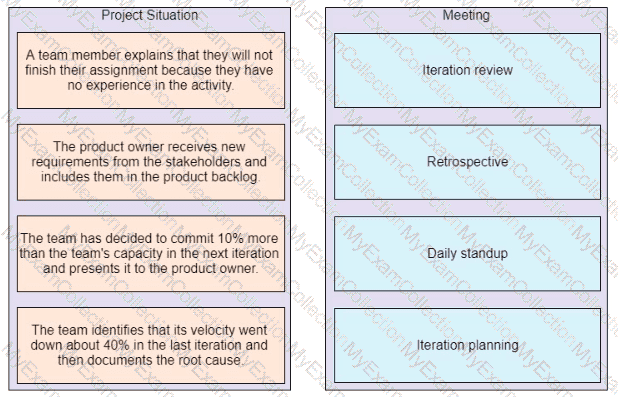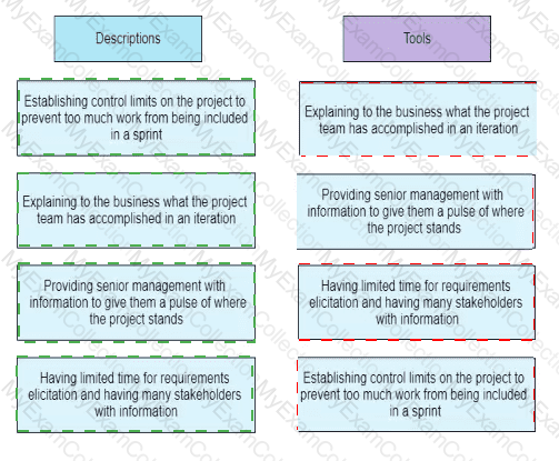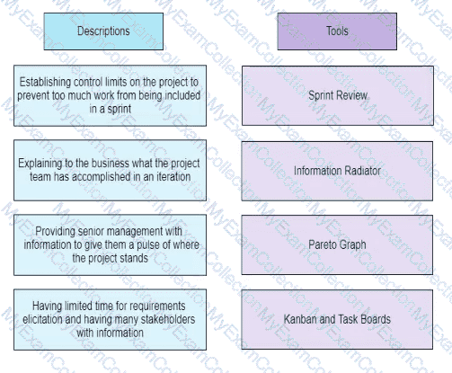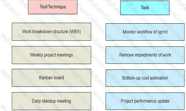 A project manager has been assigned to a software development project that will undergo several iterations until the customer is satisfied. Match the tool or technique on the left that the project manager should utilize to ensure tasks are efficiently managed to the correct task on the right.