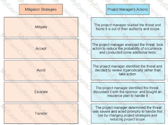 Drag the mitigation strategy on the left to the project manager's actions on the right