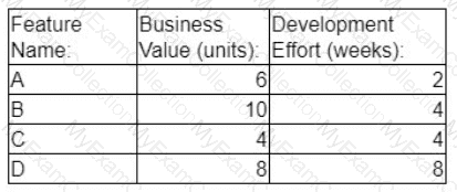A project team Is working on a relative-weighting approach to assess product features. The product features will be prioritized to highlight the benefits and bring value to the customer.