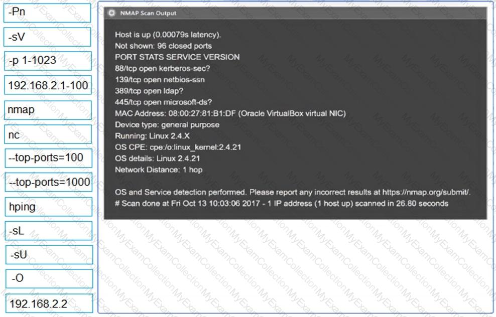 A penetration tester finishes an initial discovery scan for hosts on a /24 customer subnet. The customer states that the production network is composed of Windows servers but no container clusters. The following are the last several lines from the scan log: