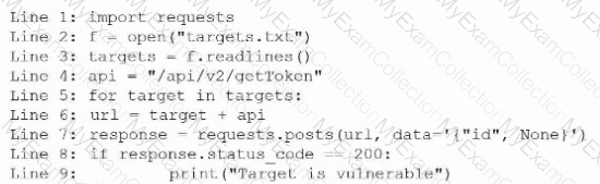During an engagement, a penetration tester receives a list of target systems and wants to enumerate them for possible vulnerabilities. The tester finds the following script on the internet: