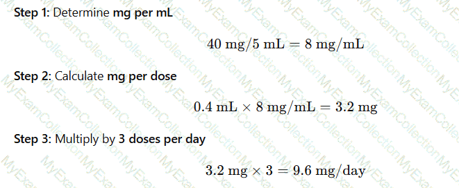 If a prescription for amoxicillin 150 mg PO q8h for 10 days is filled with a 250 mg/5 mL suspension, how many mL would the patient take per dose?
