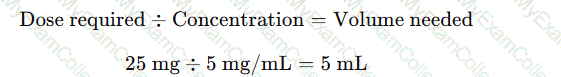 What volume, inmL, of morphine sulfate that comes in10 mL vials at a concentration of 5 mg/mLwill be needed to fill an order for25 mg?