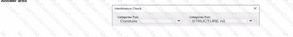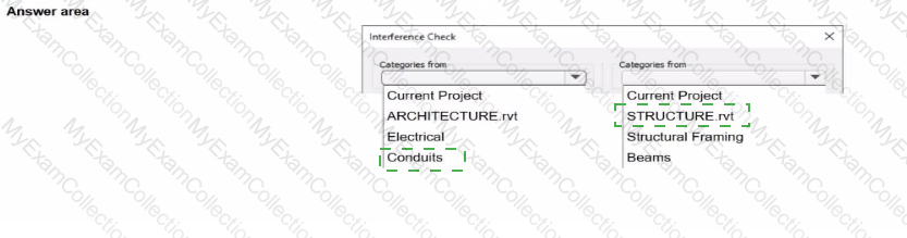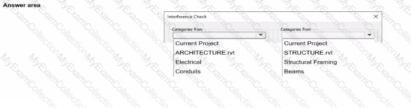 An electrical designer needs to check for Interferences between conduit in the host model and beams in a linked structure model in the Interference Check dialog, select the items that the designer must select to perform the interference check. (Select two.)