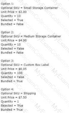 An admin has created a Small Business Bundle product with List Price = $5.00 with these Product Options:
