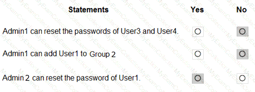 You need to modify the settings of the User administrator role to meet the technical requirements. Which two actions should you perform for the role? Each correct answer presents part of the solution. NOTE: Each correct selection is worth one point.