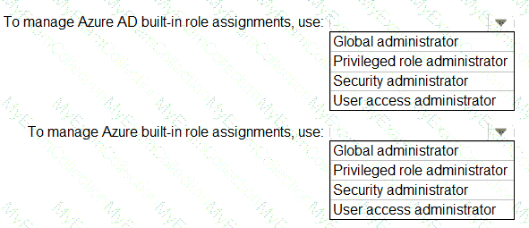 You need to identify which roles to use for managing role assignments. The solution must meet the delegation requirements.