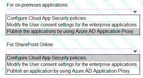You need to implement on-premises application and SharePoint Online restrictions to meet the authentication requirements and the access requirements.