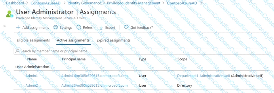 Department1 has the user administrator assignments shown in the Assignments exhibit. (Click theAssignmentstab.)