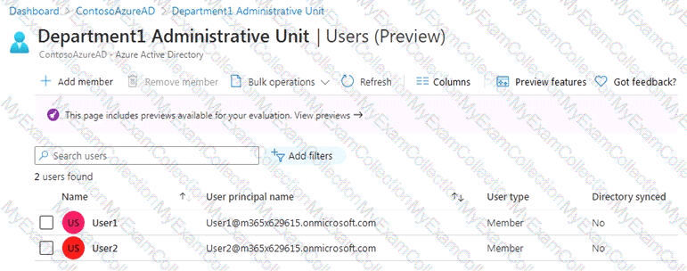You have an Azure Active Directory (Azure AD) tenant that contains an administrative unit named Department1.