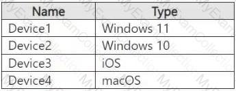 You have a Microsoft 365 E5 subscription. The subscription contains devices that are onboarded to Microsoft Purview and configured as shown in the following table.