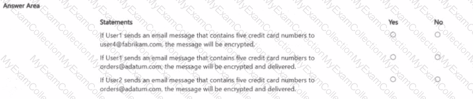 You have email messages m Microsoft Exchange Online that contain the following information types:
