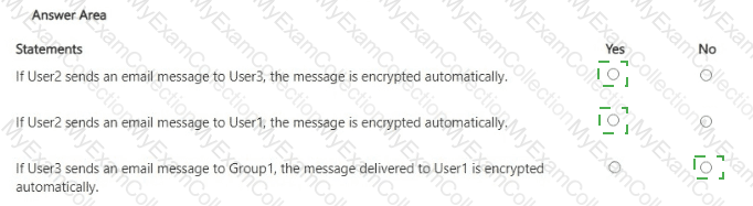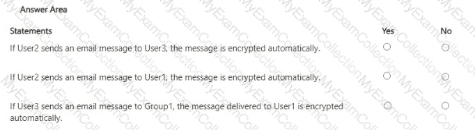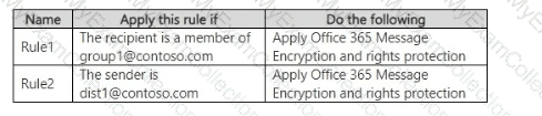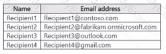A user named User 1 sends link based, branded emails that are encrypted by using Microsoft Purview Advanced Message Encryption to the recipients shown in the following table.