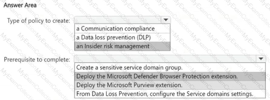 Which Microsoft Purview solution should you use for each requirement? To answer, select the appropriate options in the answer area.