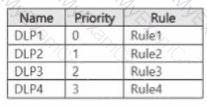 You have a data loss prevention (DLP) policy named DLP1 that has the advanced DLP rules shown in the following table.