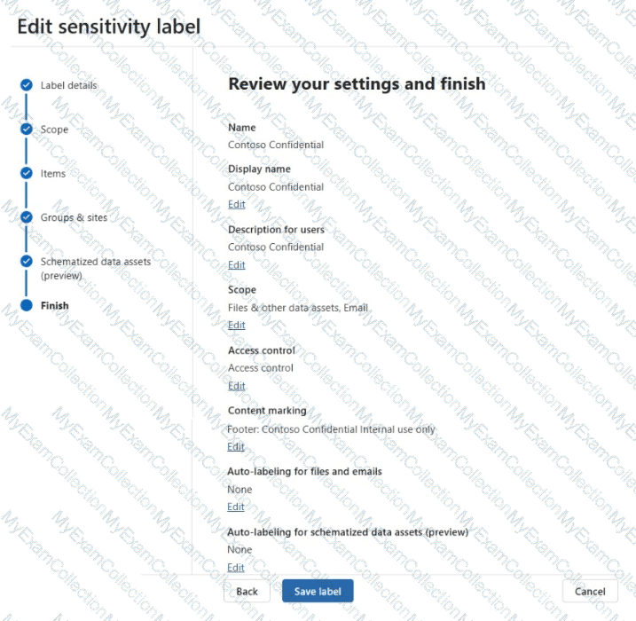 You have a Microsoft 365 subscription that contains a sensitivity label named Contoso Confidential.