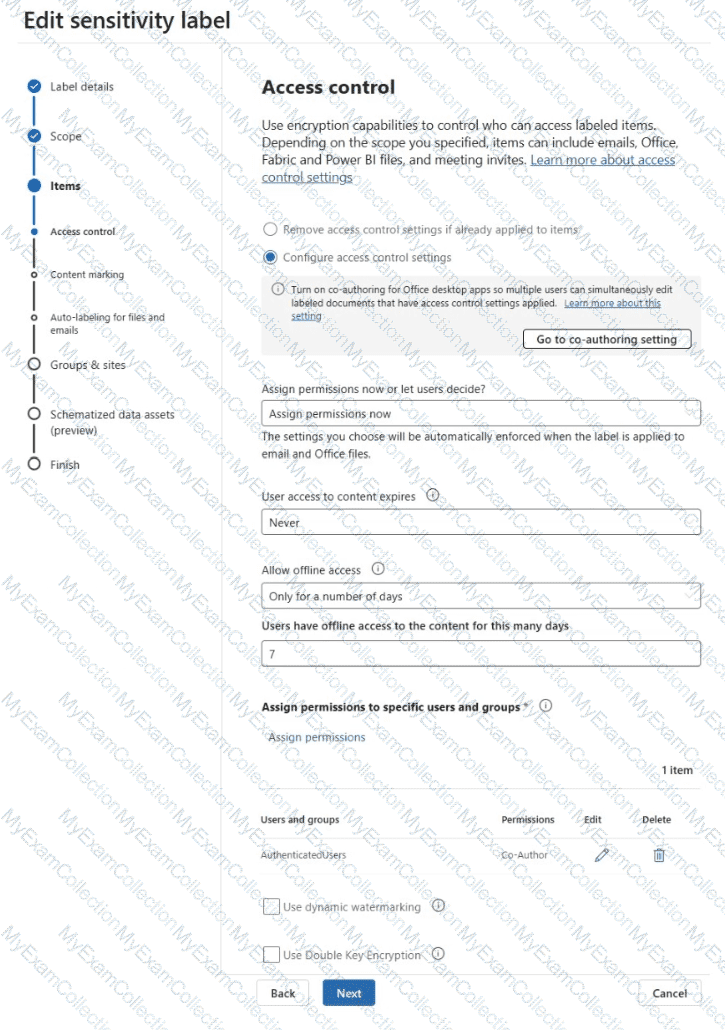You have a Microsoft 365 sensitivity label that is published to all the users in your Microsoft Entra tenant as shown in the following exhibit.