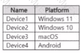 You have a Microsoft 36S ES subscription that contains the devices shown in the following table.