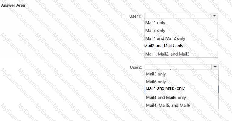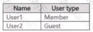 You have Microsoft 365 E5 tenant that has a domain name of 86s40q.ofimicrosoft.com. The tenant contains the users shown in the following table.