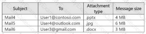 User1 plans to send emails that contain attachments as shown in the following table.