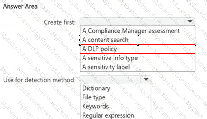 What should you create first, and what should you use for the detection method? To answer, select the appropriate options in the answer area.