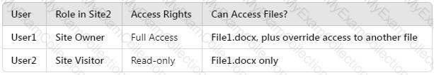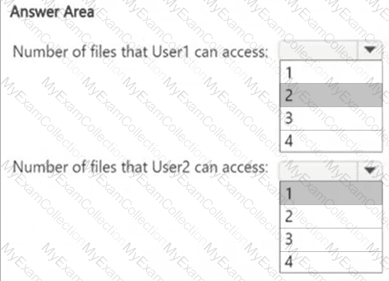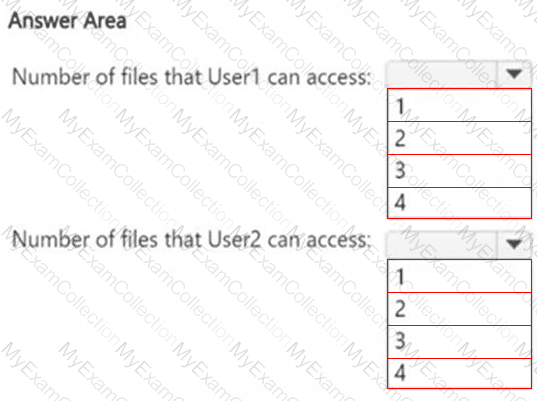 How many files in Site2 can User1 and User2 access after you turn on DLPpolicy1? To answer, select the appropriate options in the answer area.