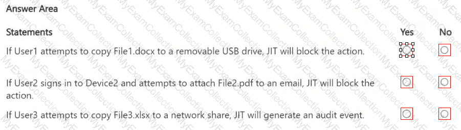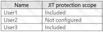 You have a Microsoft 365 E5 subscription that uses Microsoft Purview and just-in-time (JIT) protection. The subscription contains the users shown in the following table.