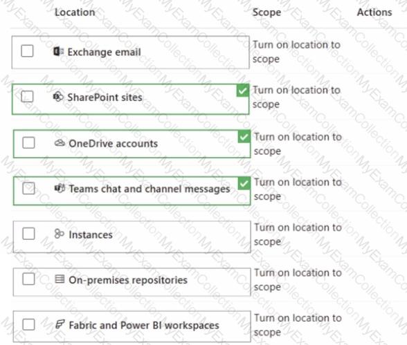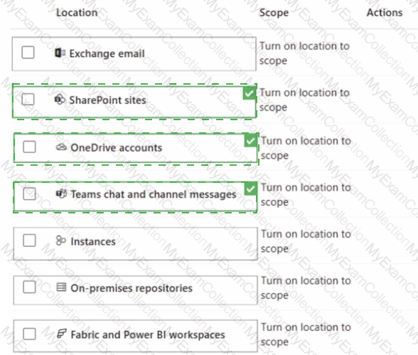 You create a data loss prevention (DLP) policy to prevent Microsoft Teams users from sharing sensitive information. You need to identify which locations must be selected to meet the following requirements: