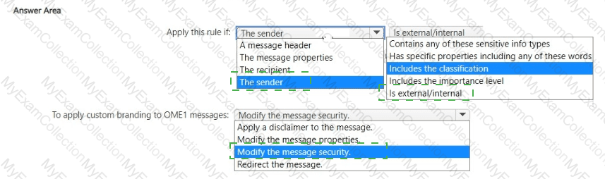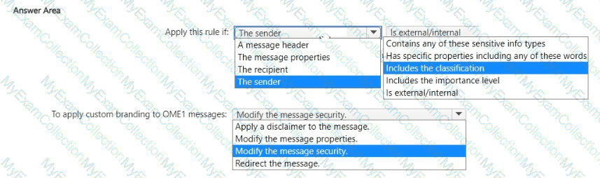 You need to create a Microsoft Exchange Online mail flow rule to apply OME1 to email.