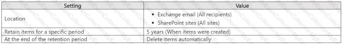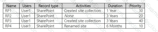 You have a Microsoft 365 E5 subscription that contains a retention policy named RP1 as shown in the following table.