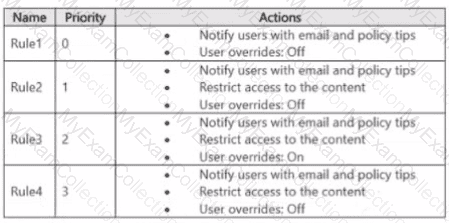 You have a data loss prevention (DIP) policy that has the advanced DIP rules shown in the following table.