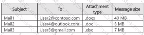 User2 plans to send emails that contain attachments as shown in the following table.