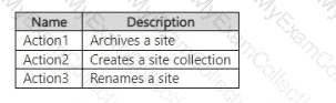 From the SharePoint Online admin center, User1 performs the actions shown in the following table.