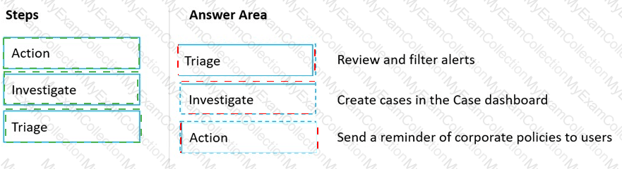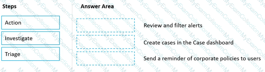 Match the Microsoft 365 insider risk management workflow step to the appropriate task.