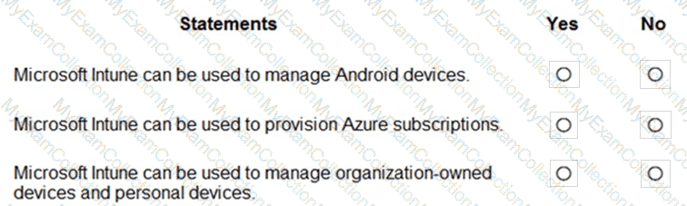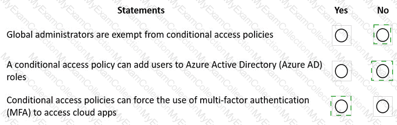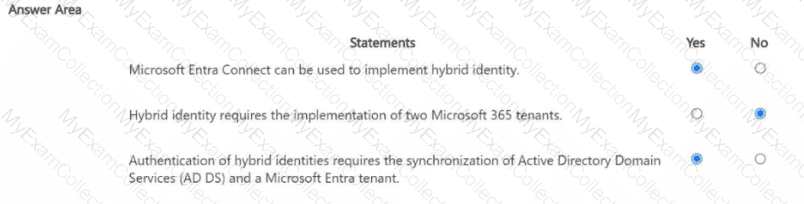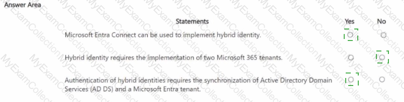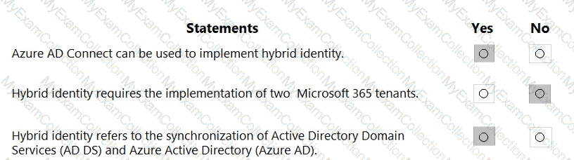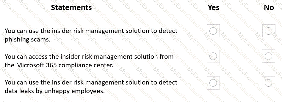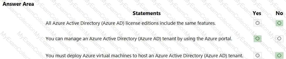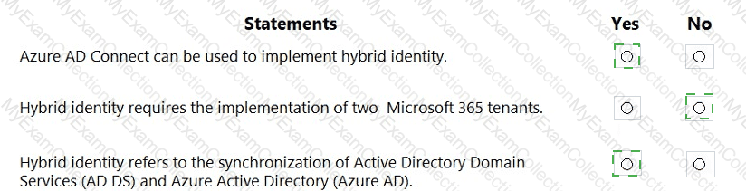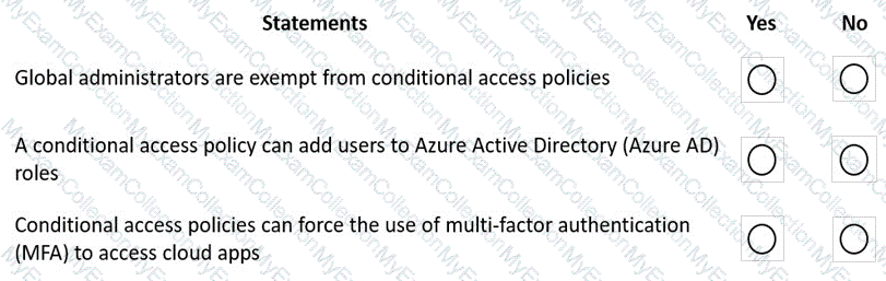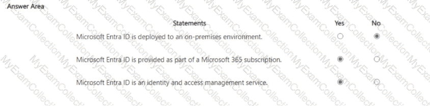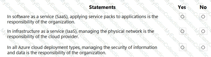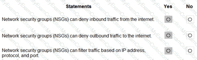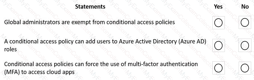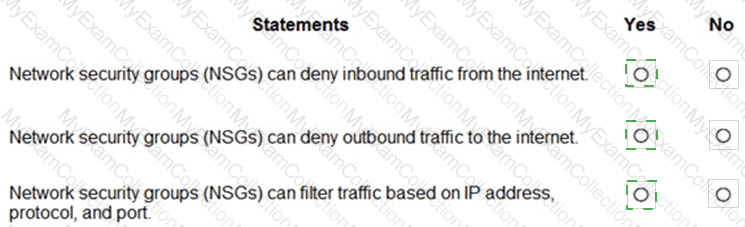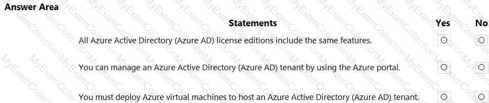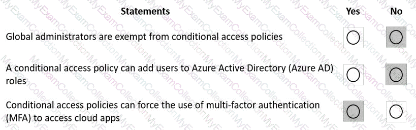 For each of the following statements, select Yes if the statement is true. Otherwise, select No.